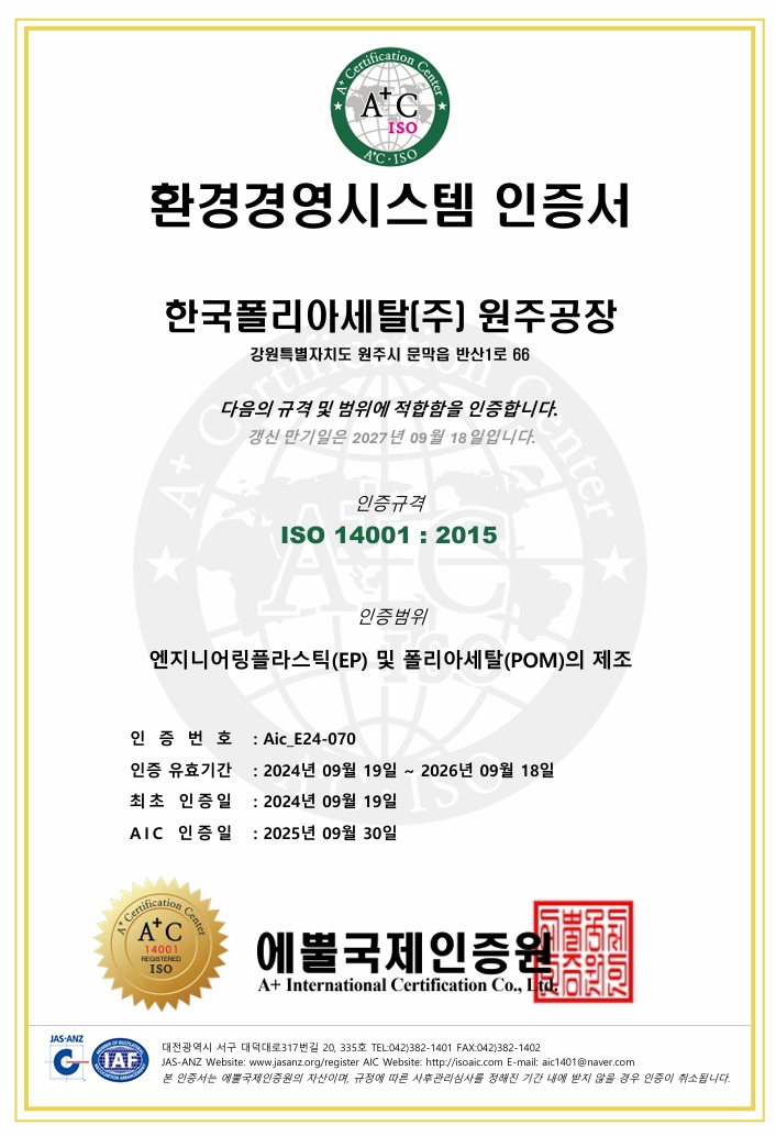 ISO 9001(International Organization for standardization) - 한국폴리아세탈(주)